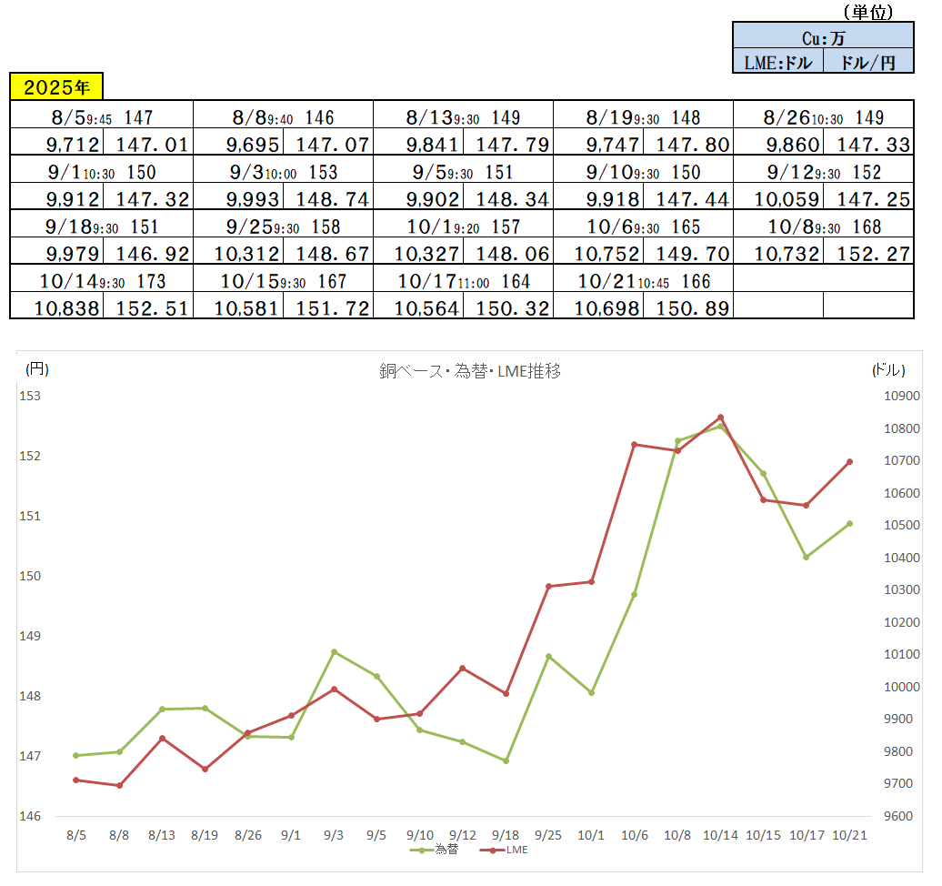 2025/10/21 ・ 銅ベース(銅建値)情報