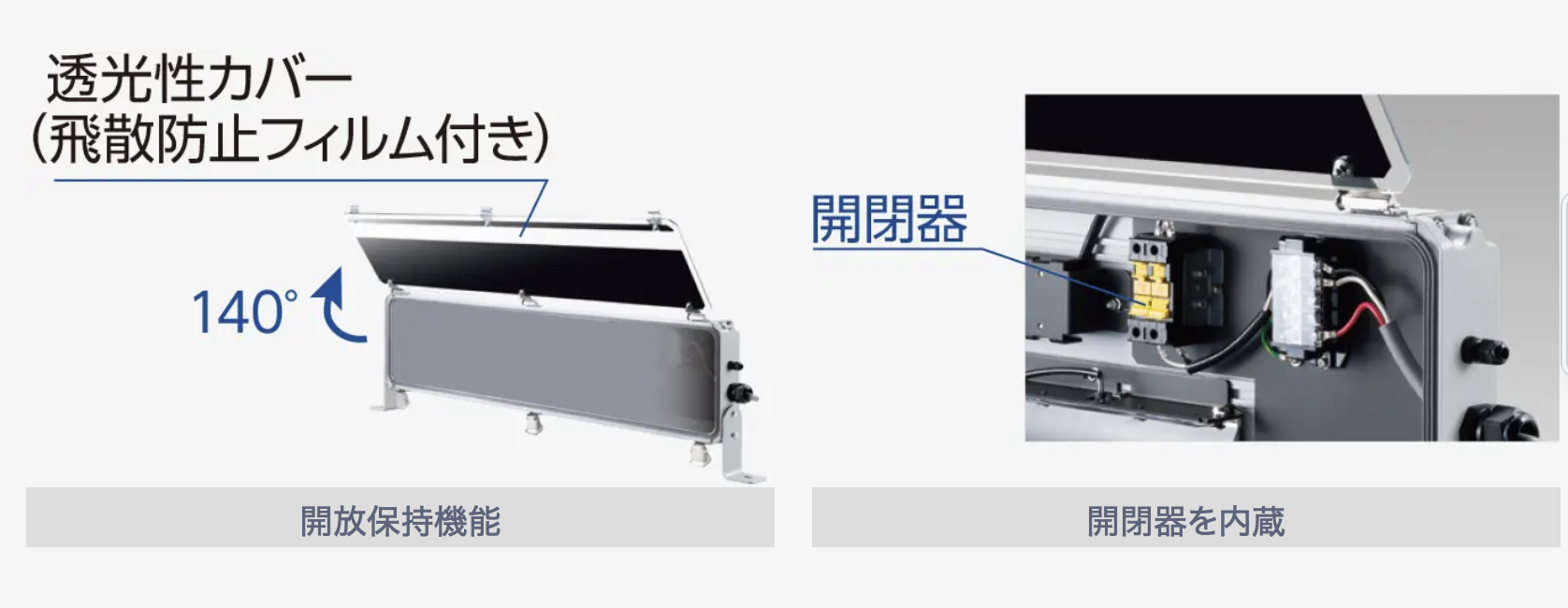 開放保持機能:透光性カバーの開放保持機能を採用。