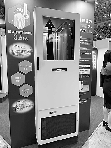 日東工業は、クーラー実装型ラック「Rei Rack(冷ラック)」を出展した。ラックに空冷による冷却機能が実装され、オールインワンでIT機器の発熱問題を解決する。