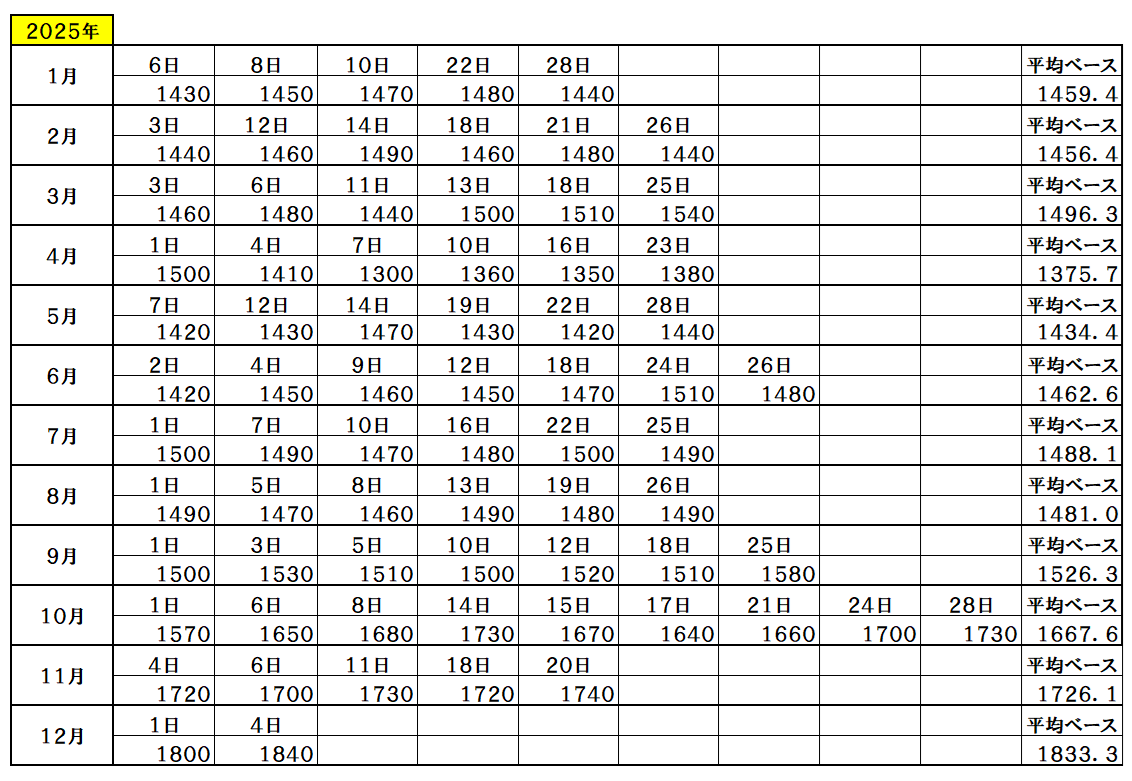 • 『2025年12月4日~』 銅ベース・銅建値 1840ベース   (単位:千円/t)