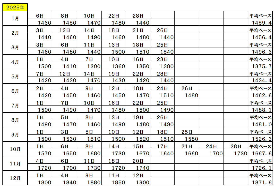 • 『2025年12月12日~』 銅ベース・銅建値 1900ベース   (単位:千円/t)