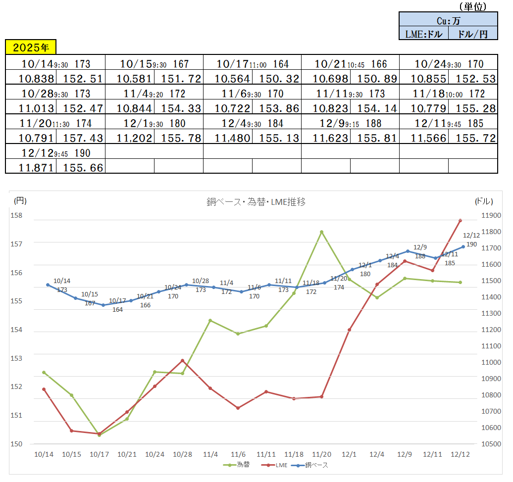 2025/12/12 ・ 銅ベース(銅建値)情報