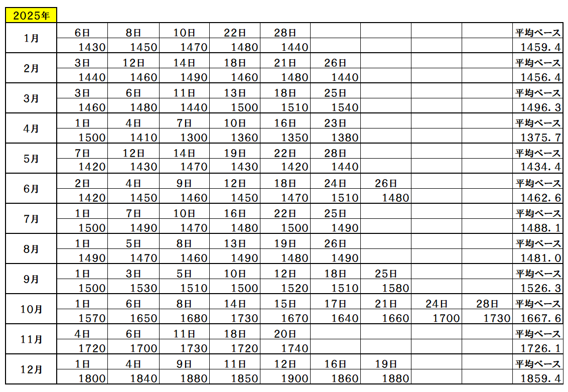 • 『2025年12月16日~』 銅ベース・銅建値 1860ベース   (単位:千円/t)