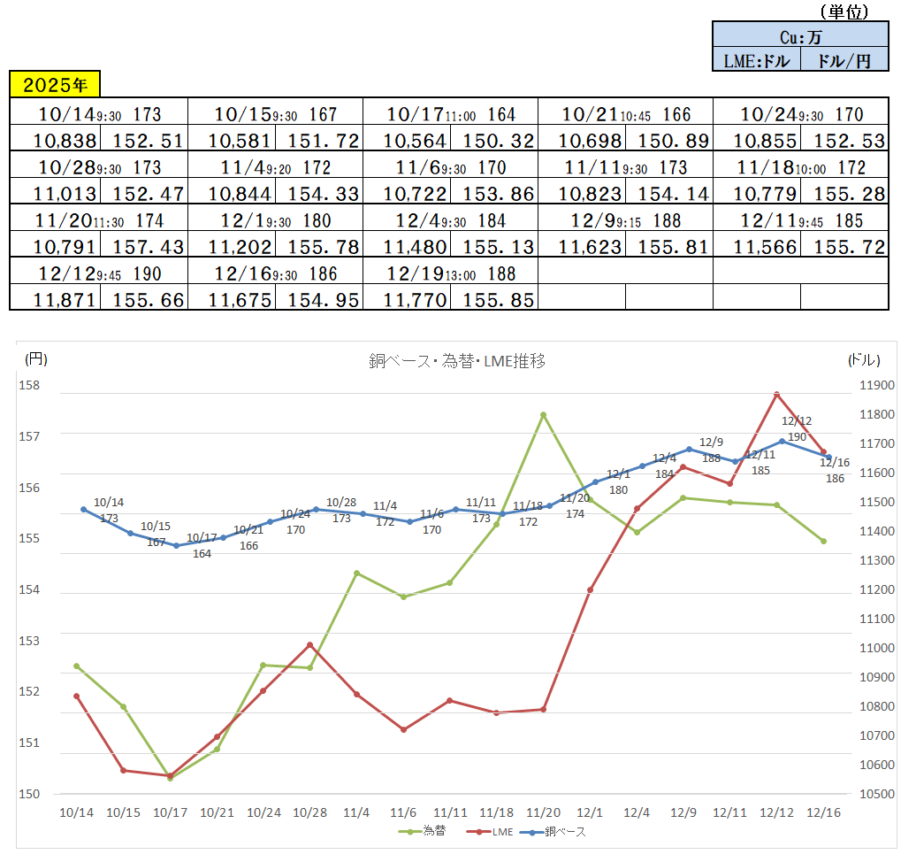 2025/12/19 ・ 銅ベース(銅建値)情報