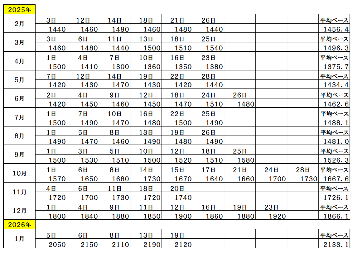 • 『2026年1月8日~』 銅ベース・銅建値 2110ベース   (単位:千円/t)