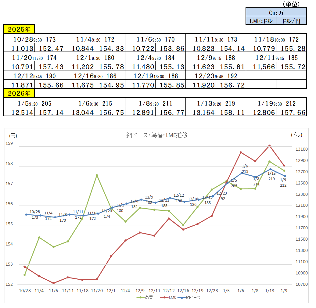 2026/1/19 ・ 銅ベース(銅建値)情報