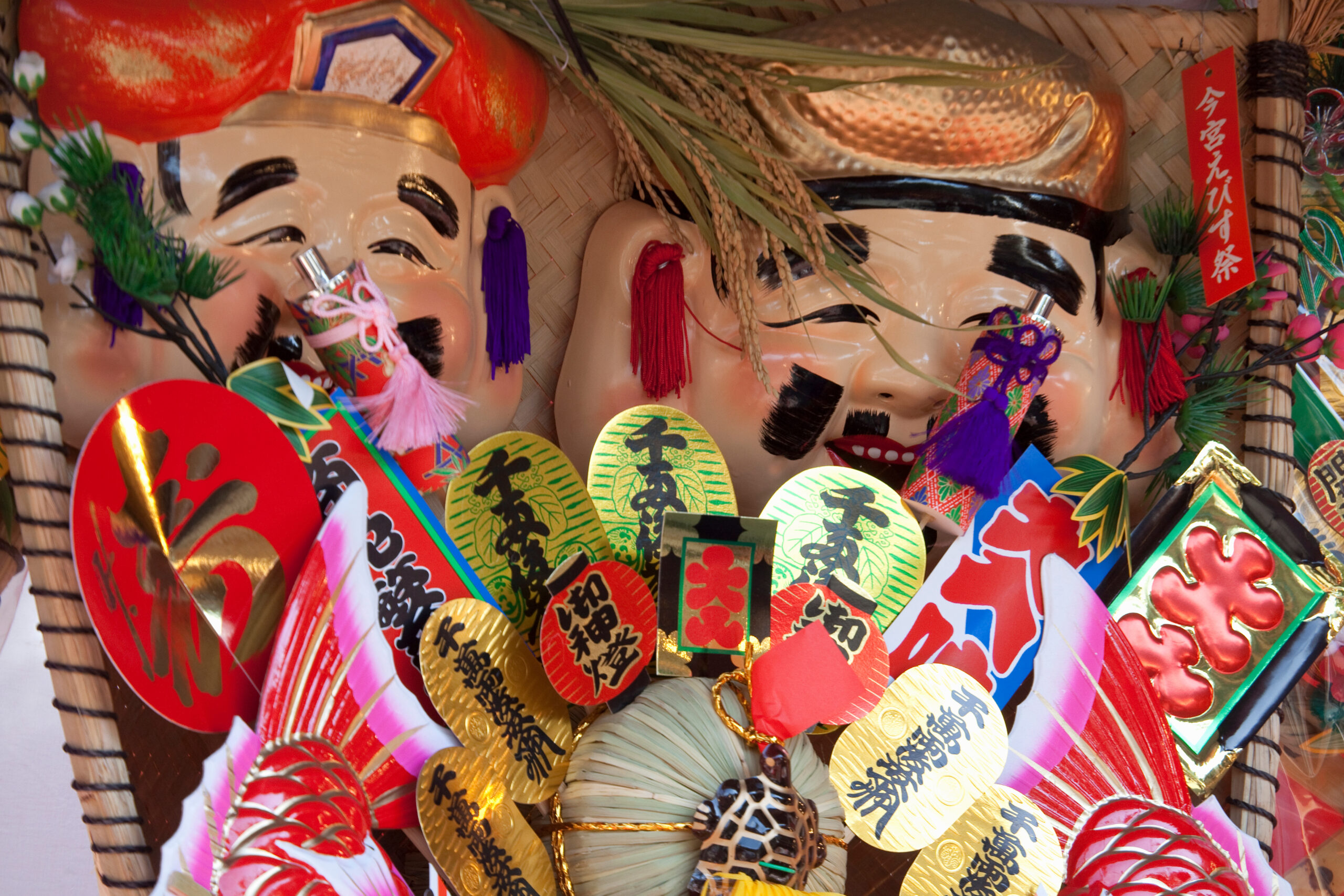 全国的には「酉の市」が有名ですが、関西の新春の恒例行事といえば「えべっさん」。毎年1月9日から11日の3日間執り行われる「十日戎(とおかえびす)」です。「商売繁盛で(じゃ)笹もってこい!」という歌うような掛け声の中、大勢の人がえびす神社にお参りして商売繁盛を祈願し、福笹や熊手などの縁起物を買って帰ります。