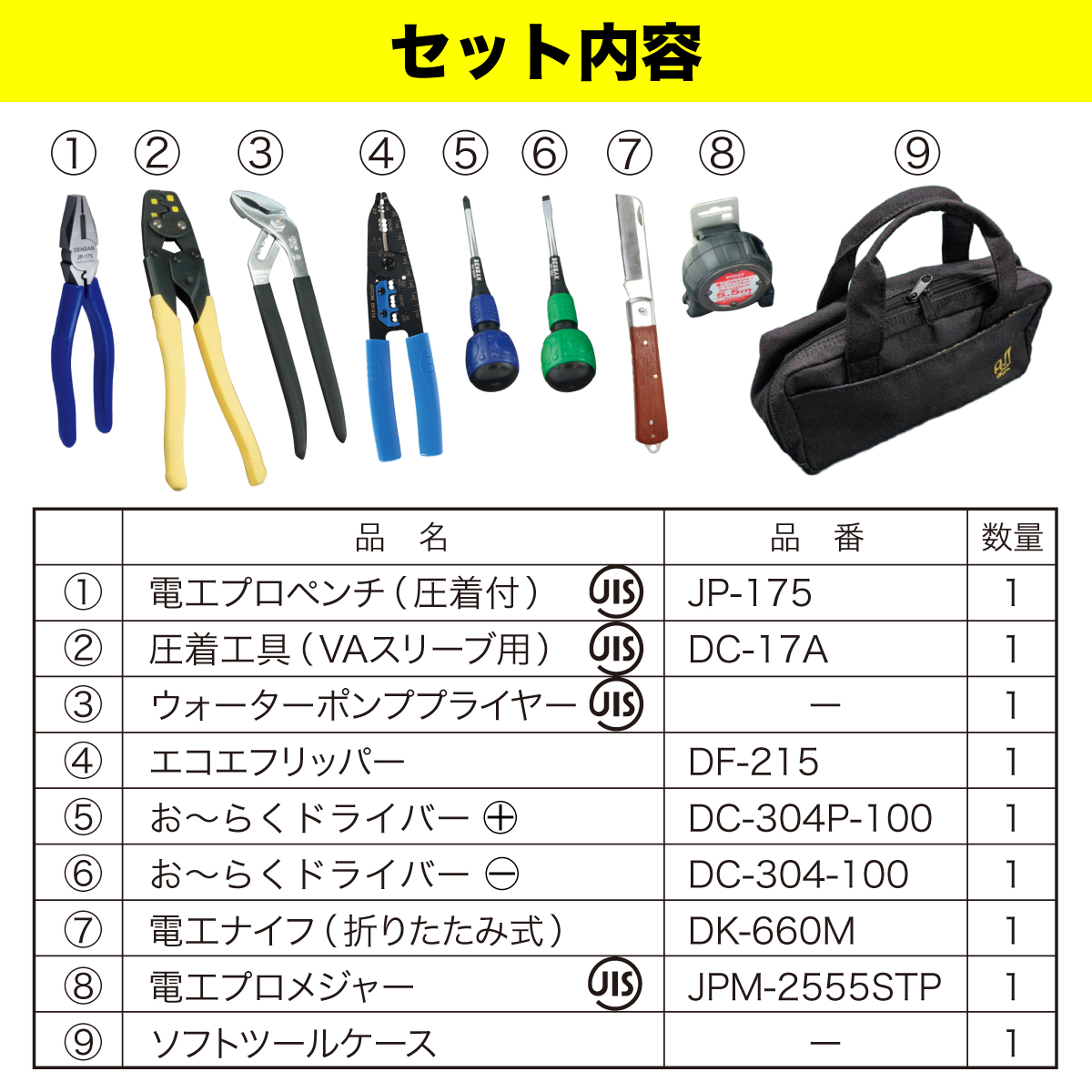 【ジェフコム】1種・2種 技能試験に必要な工具をワンセット『電気工事士技能試験工具キット』
