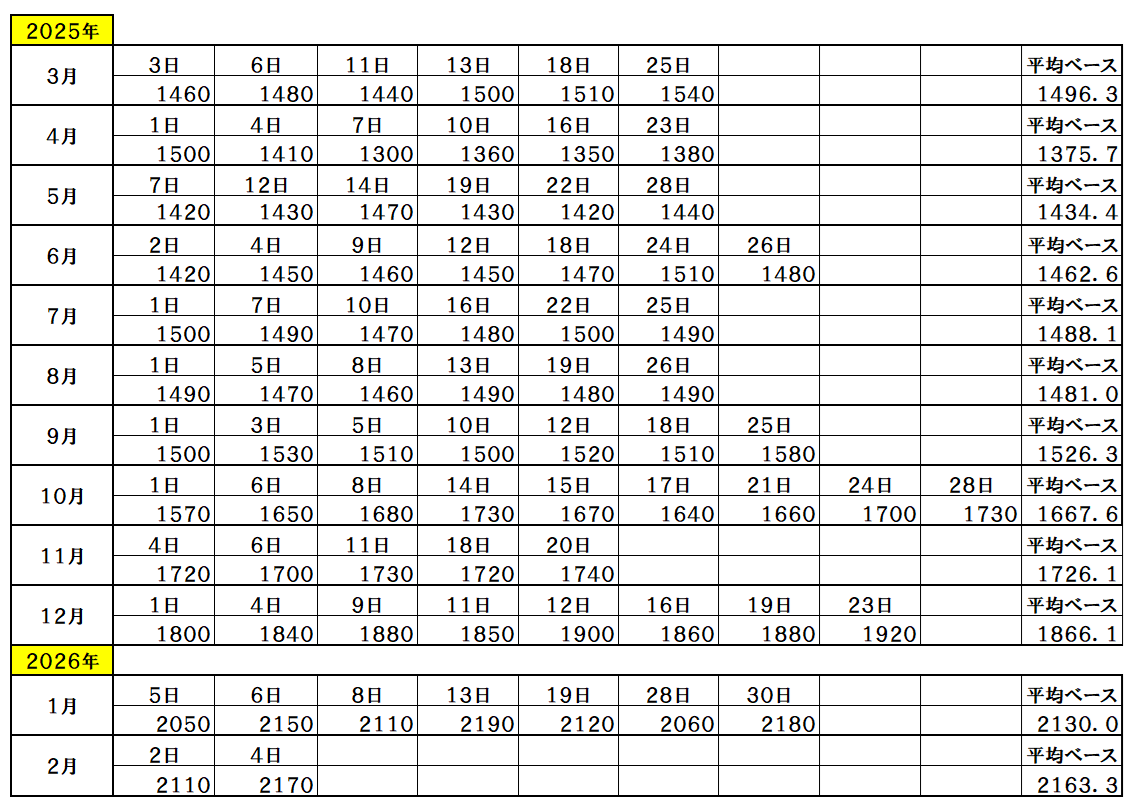 2026年2月4日~ 2170ベース(単位:千円/t)