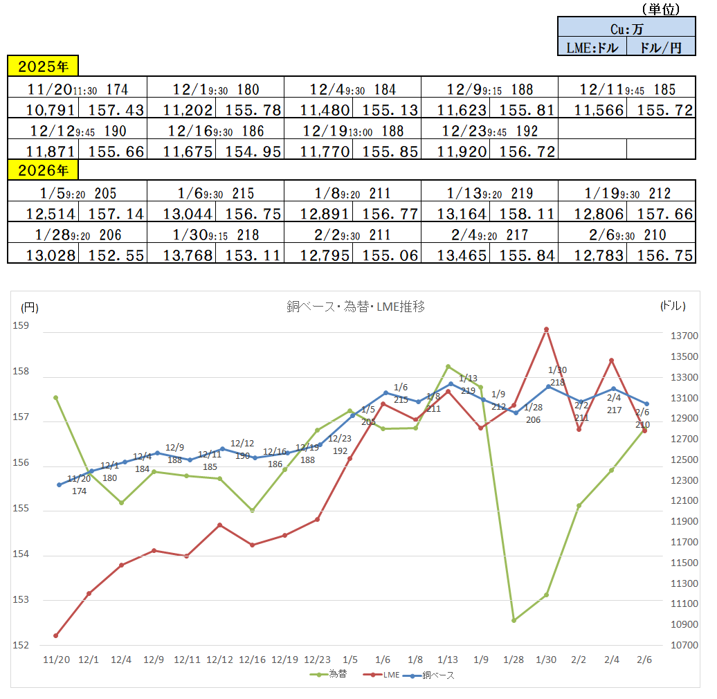 2026/2/6 ・ 銅ベース(銅建値)情報
