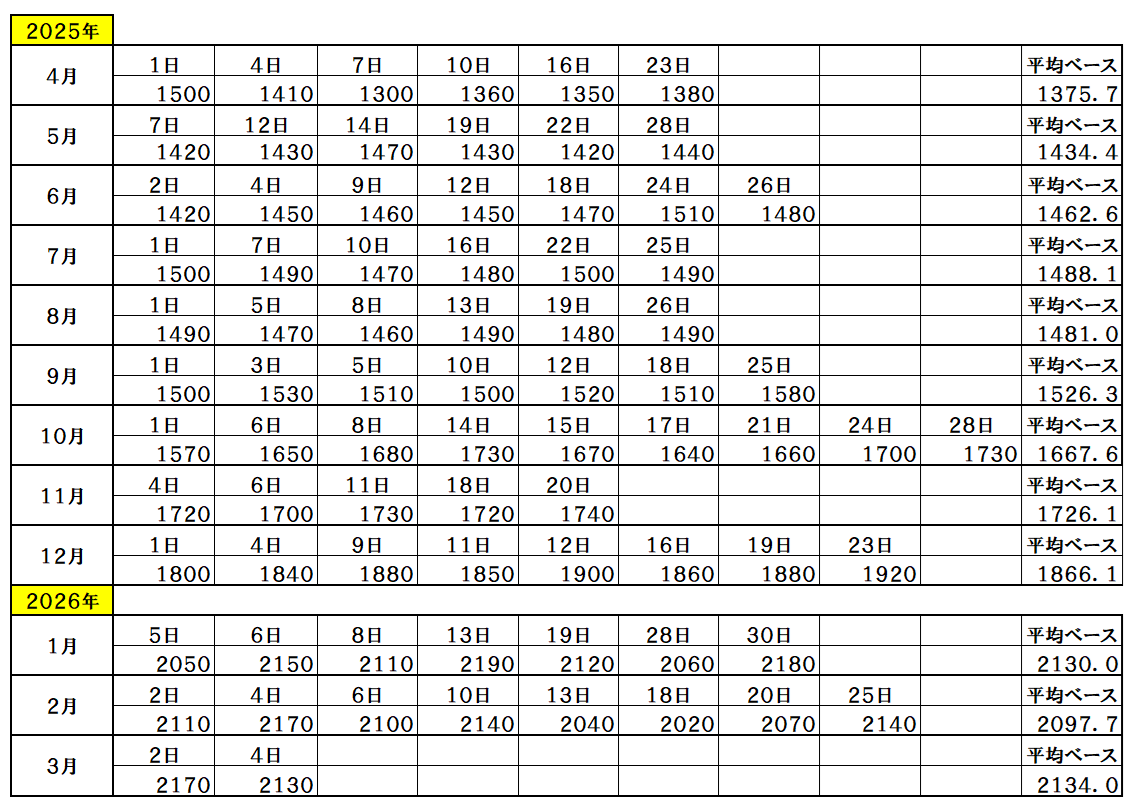 2026年3月4日~ 2130ベース(単位:千円/t)