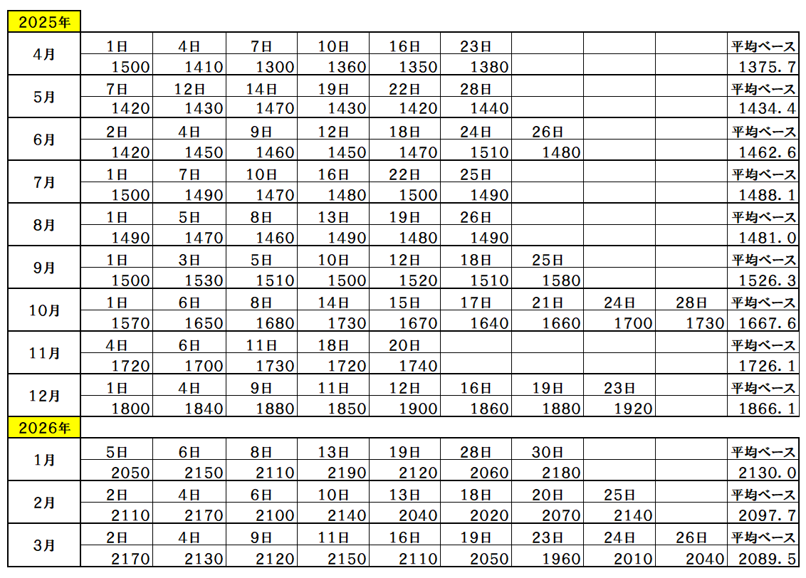 • 『2026年3月26日~』 銅ベース・銅建値 2040ベース   (単位:千円/t)
