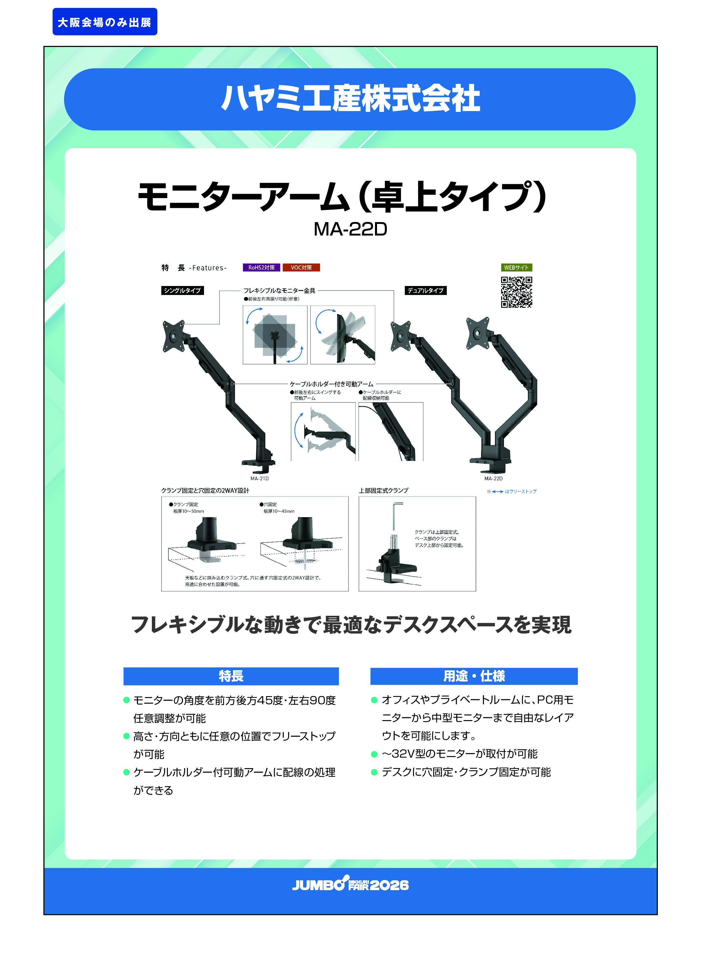 ・オフィスやプライベートルームに、PC用モニターから中型モニターまで自由なレイアウトを可能にします。